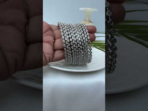 Set of 12 CZ diamond bangles with silver and gold finish that replicates very much the real 30-40 cent diamond size bangle in white gold and yellow gold. Set of 12 bangles.
