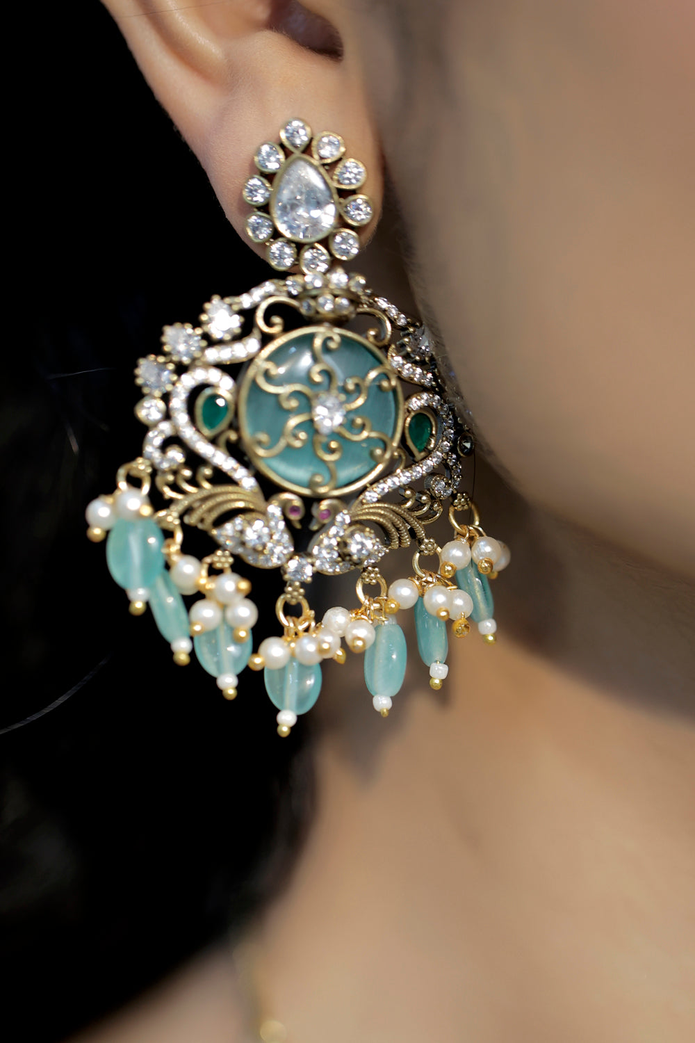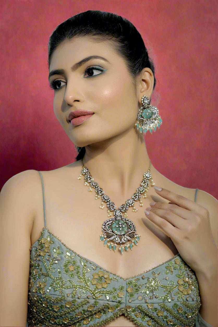 ad zirconia victorian kundan Choker Necklace Earrings Set